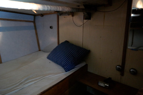 Dit was onze kans! Het formaat en de prijs van het schip is goed, de romp lijkt geschikt om hem zeilend te kunnen maken en de motor is redelijk nieuw en werkt goed.